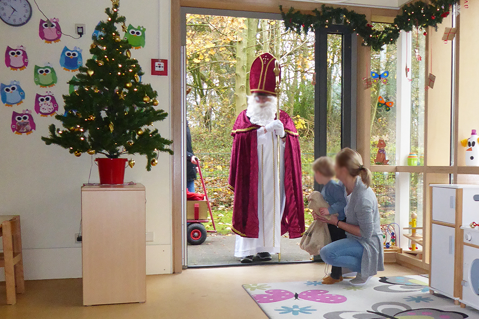 Am 05. Dezember konnte das Geheimnis endlich gelüftet werden. Als die Kinder an diesem besonderen Tag im Stuhlkreis saßen, schlich sich ein Mann mit weißem Bart, rotem Gewand und einer Bischofsmütze durch den Garten an. Schon bald war allen klar: Der Nikolaus ist da!
