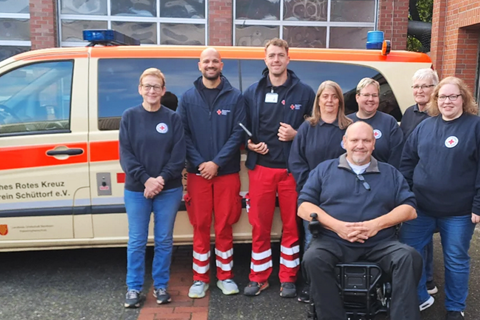 Auf dem Foto seht ihr Teile des Botschafter-Teams, zusammen mit dem Vorstand und dem Bereitschaftsleiterteam des DRK Schüttorfs.