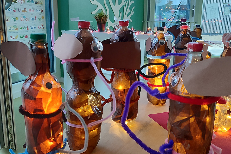 Mit viel Kreativität entstanden Mosaik-Eimerchen und Laternen in Form von Dackeln, die die Kinder stolz präsentierten. Nachdem alle Laternen fertig waren, zogen die kleinen Lichterkünstler singend durch die Straßen der Umgebung und verbreiteten dabei fröhliche Stimmung und strahlende Augen bei Groß und Klein.